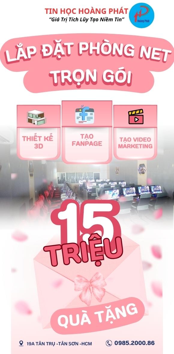 Tin Học Hoàng Phát – Chuyên lắp đặt phòng net trọn gói với nhiều năm kinh nghiệm trải dài từ bắc vô nam với chi nhánh lắp đặt phòng net Tp.HCM, Bình Dương, Đà Nẵng, nhân viên lắp đặt chuyên nghiệp nhiều kinh nghiệm hỗ trợ quý khách hàng nhiệt tình trong quá trình xảy ra sự cố.